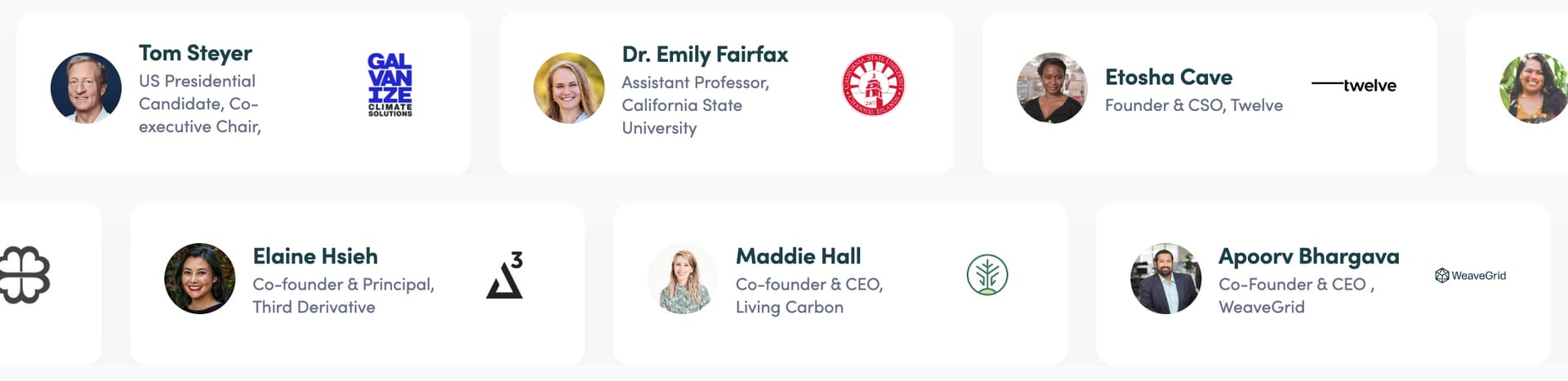 100+ guest speakers — Featuring climate leaders from climate policy, technology, academia, media, and beyond.